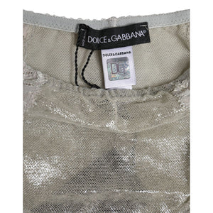 Dolce & Gabbana Gray Cotton Floral Lace High Waist Panty Underwear