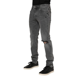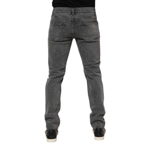 Dolce & Gabbana Gray Cotton Logo Plaque Denim Jeans