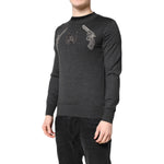 Dolce & Gabbana Gray Embroidery Knit Men Pullover Sweater