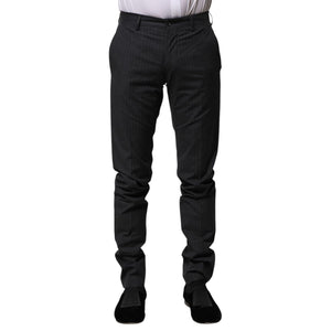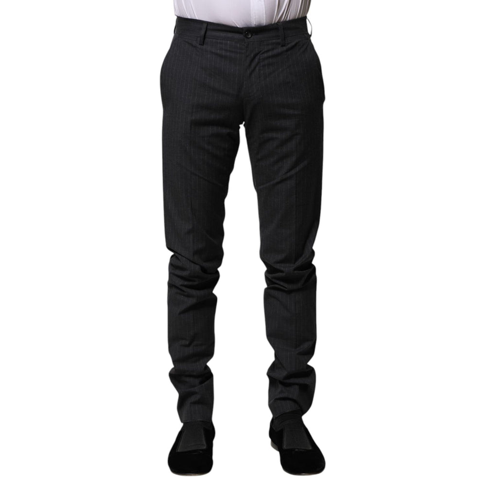 Dolce & Gabbana Gray Striped Cotton Formal Pants