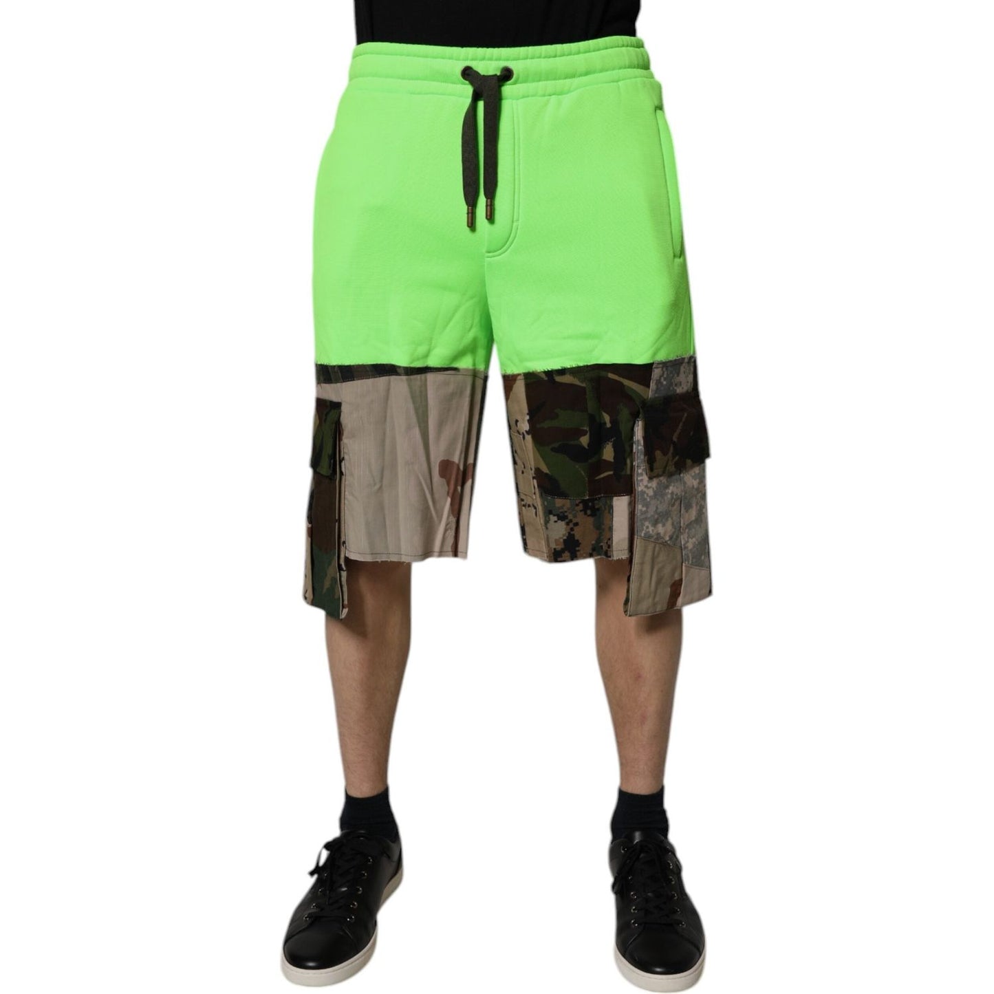 Dolce & Gabbana Green Patchwork Camouflage Men Cargo Shorts