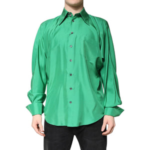 Dolce & Gabbana Green Silk Satin Long Sleeves Casual Shirt