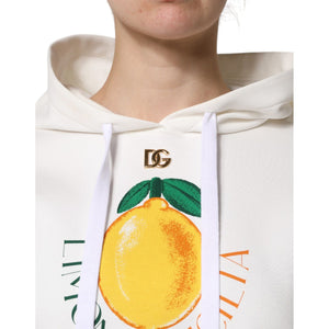Dolce & Gabbana Ivory Cotton Printed Hooded Pullover Sweater