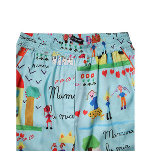 Dolce & Gabbana Light Blue Drawing Mid Waist Wide Leg Pants
