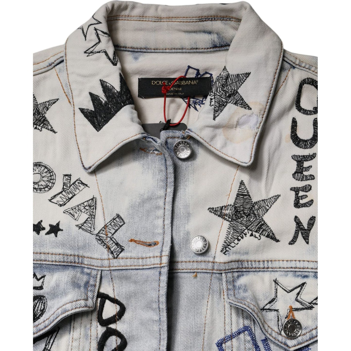 Dolce & Gabbana Light Blue Graffiti Button Down Denim Jacket