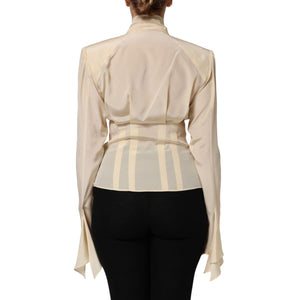 Dolce & Gabbana Light Yellow Ascot Collar Buttoned Blouse Top