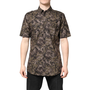 Dolce & Gabbana Multicolor Camouflage Button Down GOLD Shirt