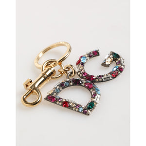 Dolce & Gabbana Multicolor Crystal DG Logo Gold Keychain Charm Keyring