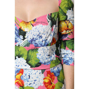 Dolce & Gabbana Multicolor Floral Pleated Sheath Midi Dress