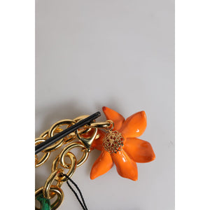 • Dolce & Gabbana Multicolor Gold Brass Orange Lily Floral Chain Necklace