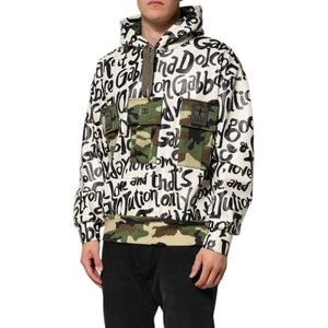 Gorgeous brand new, 100% Authentic Dolce & Gabbana hooded pullover sweater featuring a DG mania all over print and camouflage pocket.