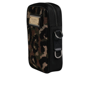 Dolce & Gabbana Multicolor Leopard Jacquard Logo Plaque Neck Strap Bag