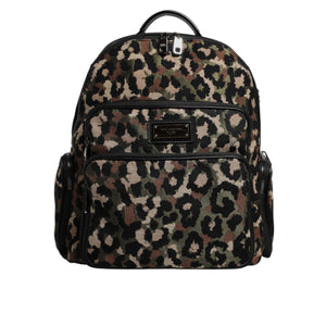 Dolce & Gabbana Multicolor Leopard Print DG Logo Plaque Men Backpack Bag