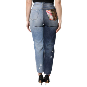 Gorgeous brand new, 100% Authentic Dolce & Gabbana patchwork tapered high waist denim jeans.
