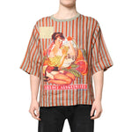 Dolce & Gabbana Multicolor Striped Graphic Linen Round Neck T-shirt