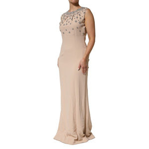 Gorgeous brand new with tags, 100% Authentic Dolce & Gabbana full-length gown in nude/ecru tone. This sleeveless evening dress is beautifully detailed with sparkling crystal embellishments and delicate beading across the bodice and neckline, creating a glamorous and timeless look. Perfect for formal occasions, red carpet events, or special evenings.