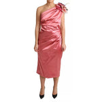 Dolce & Gabbana Pink Draped Midi Flower Applique Dress
