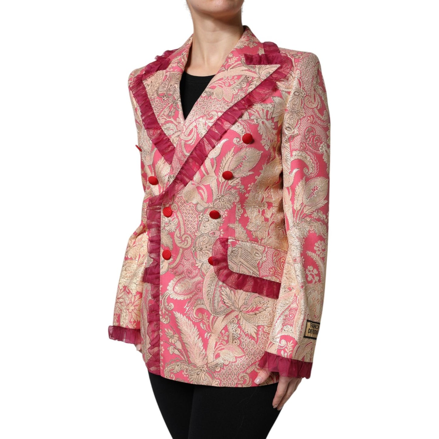 Dolce & Gabbana Pink Gold Jacquard Nylon Coat Blazer Jacket