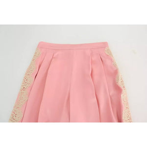 Dolce & Gabbana Pink Lace Trimmed Silk Satin Wide Legs Pants