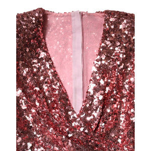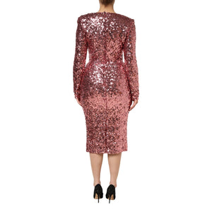 Dolce & Gabbana Pink Sequin Statement Nylon Midi V-Neck Dress