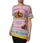 Dolce & Gabbana Pink Silk Araneine Siciliana Print Short Sleeves Top