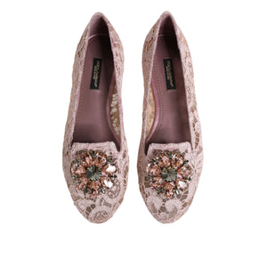 Dolce & Gabbana Pink Taormina Lace Crystals Flats Shoes