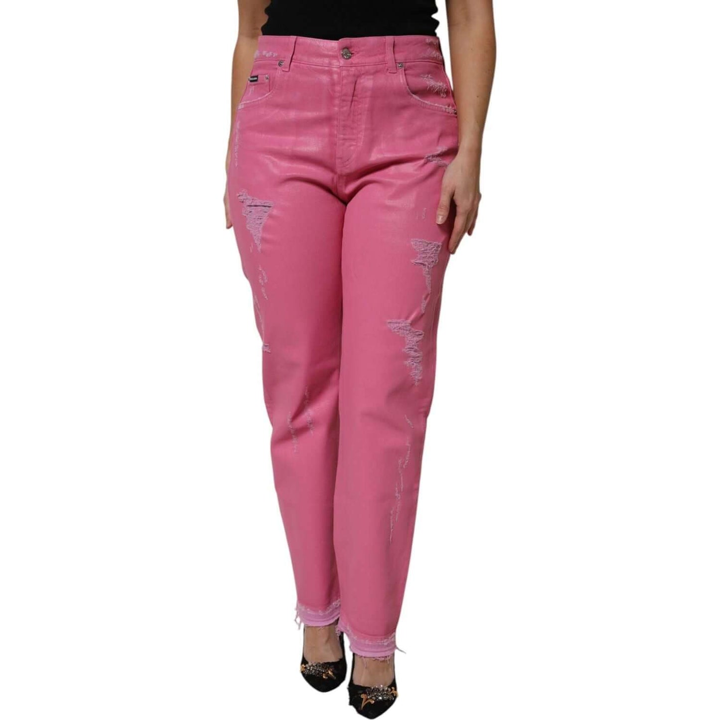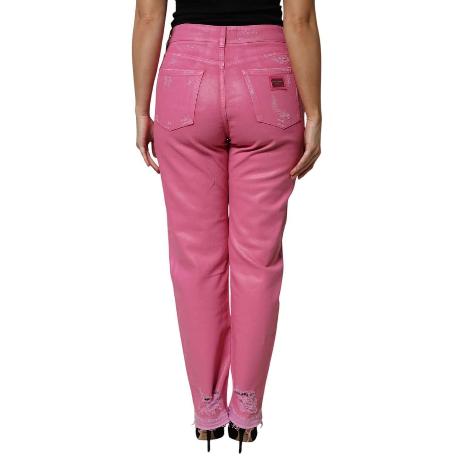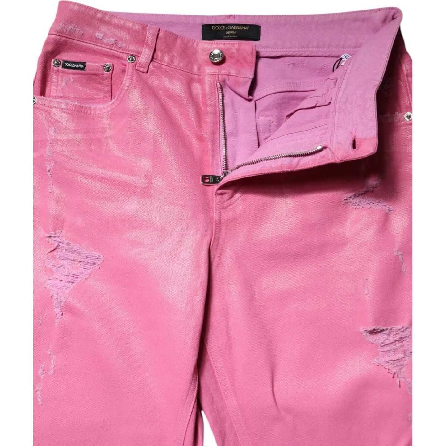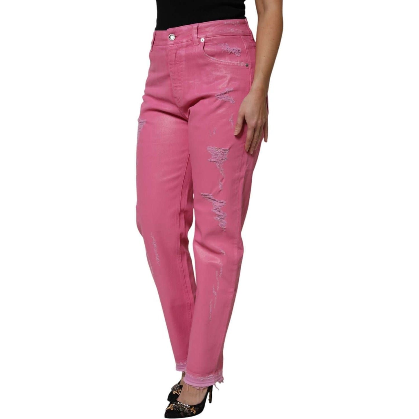 Dolce & Gabbana Pink Tattered Mid Waist Tapered Denim Jeans