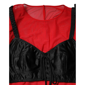 Dolce & Gabbana Red Black Bustier Detailing Long Sleeves Top