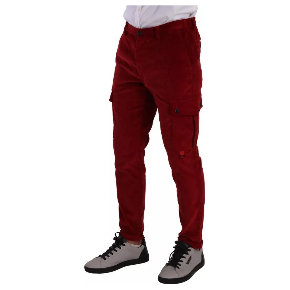 Dolce & Gabbana Red Corduroy Cotton Cargo Skinny Pants