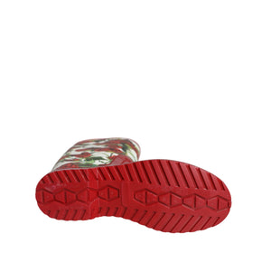 Dolce & Gabbana Red Floral Rubber Knee High Flat Boots Shoes