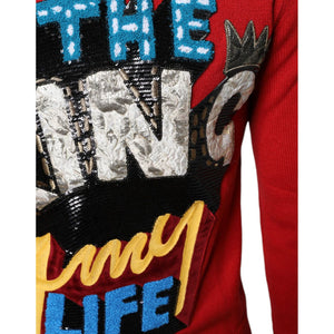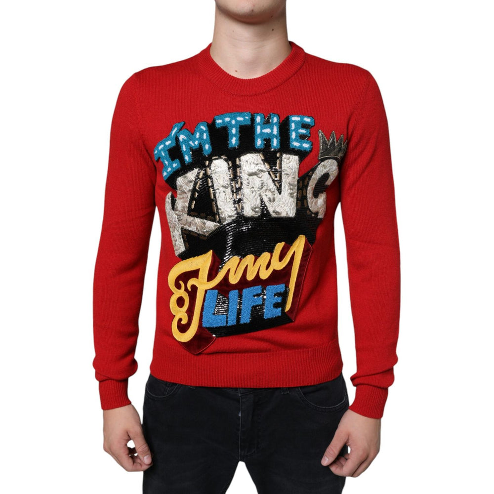 Dolce & Gabbana Red I'm The King Wool Crew Neck Sweatshirt Sweater