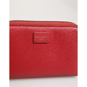 Dolce & Gabbana Red Leather Zip Around Logo Plaque Men Coin Purse Wallet