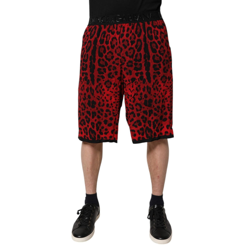 Dolce & Gabbana Red Leopard Print Viscose Bermuda Shorts