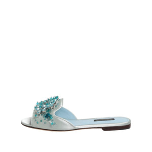 Dolce & Gabbana Silver Blue Leather Bead Embellish Slide Shoes