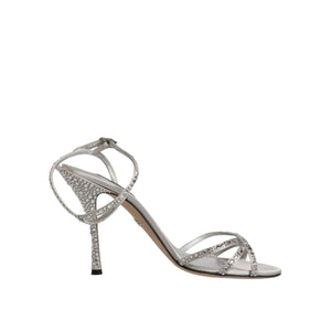 Dolce & Gabbana Silver Crystal Ankle Strap Sandals Shoes
