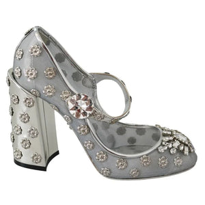 Dolce & Gabbana Silver Crystal Studs Heels Mary Janes Pumps Shoes