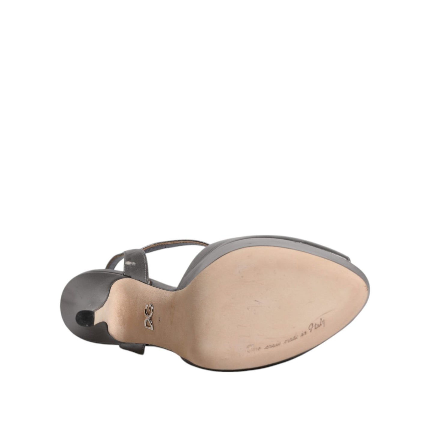 Dolce & Gabbana Silver Leather Platform Heels Sandals Shoes