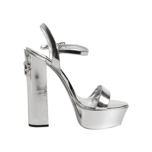 Dolce & Gabbana Silver Leather Platform Keira Sandals Shoes