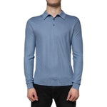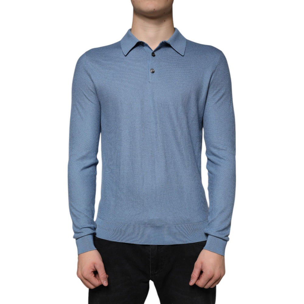 Dolce & Gabbana Sky Blue Silk Collared Men Pullover Sweater