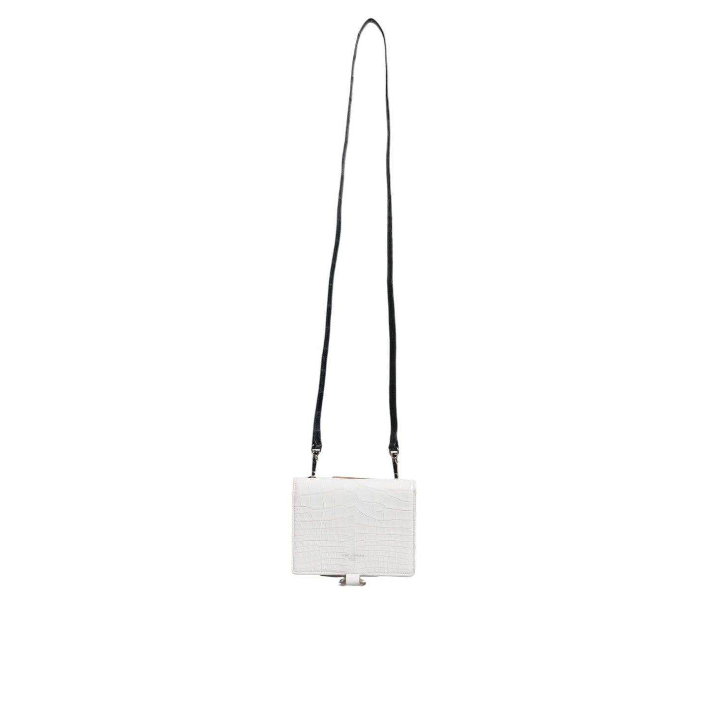 Dolce & Gabbana White Blue Leather Bifold Crossbody Sling Wallet