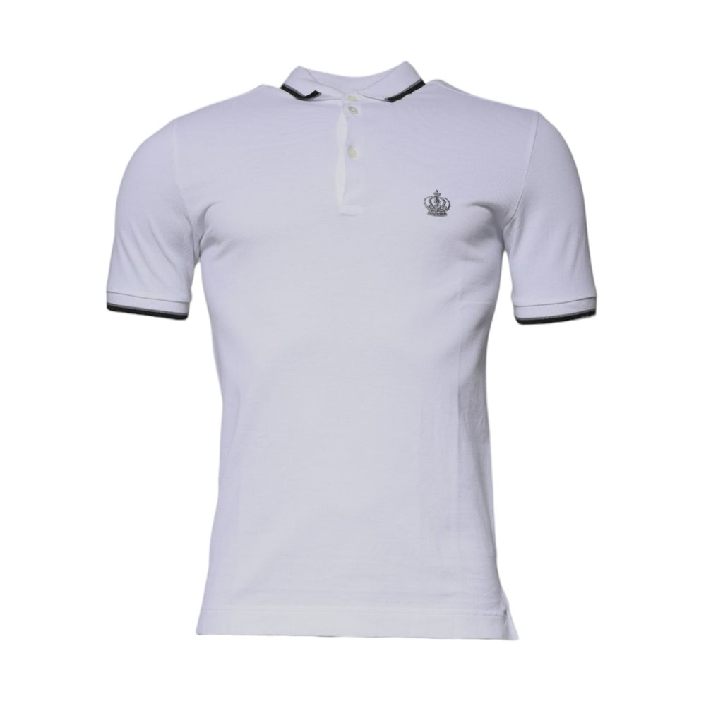 Dolce & Gabbana White Cotton Crown Collared Polo T-shirt