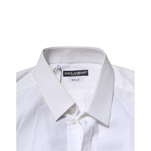 Dolce & Gabbana White Cotton GOLD Long Sleeves Dress Men Shirt