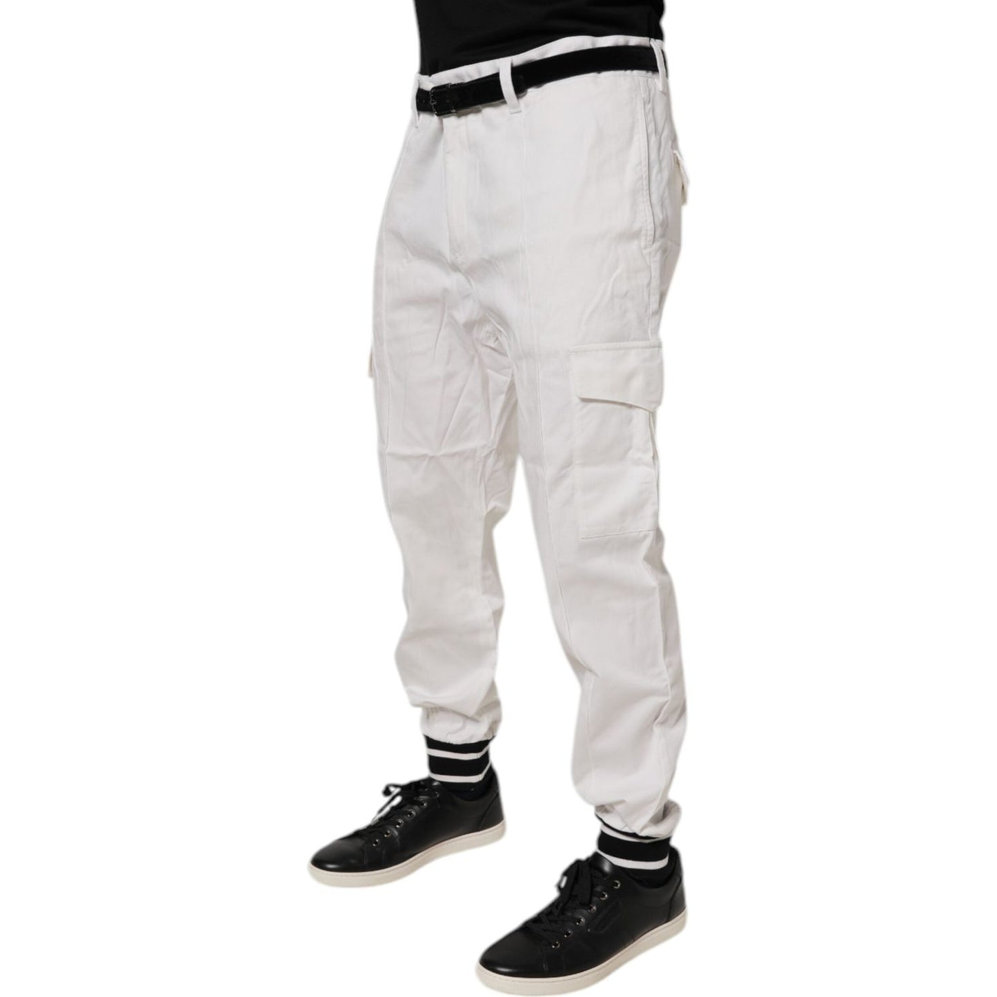 Dolce & Gabbana White Cotton Jogger Cargo Skinny Pants