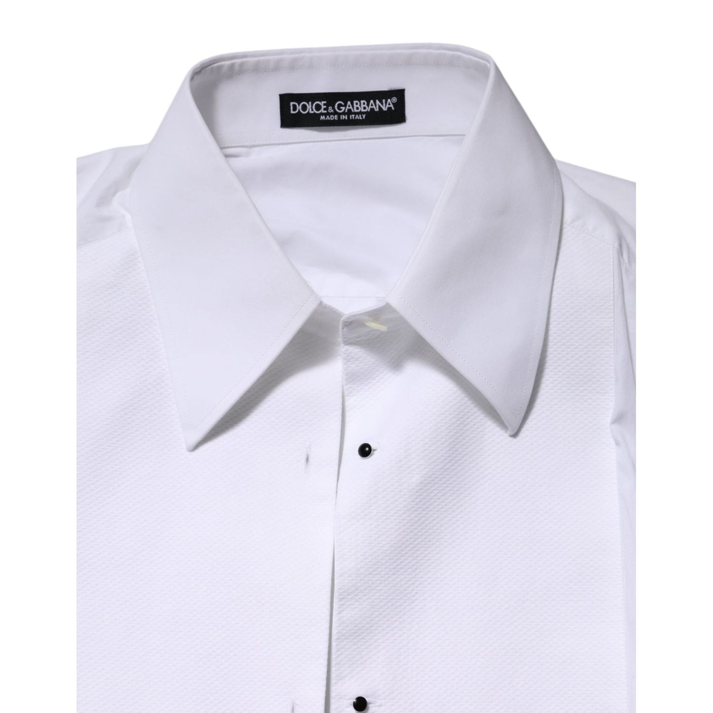 Dolce & Gabbana White Cotton Long Sleeves Collared Top Shirt