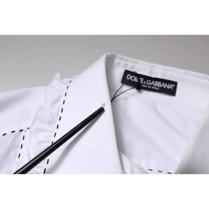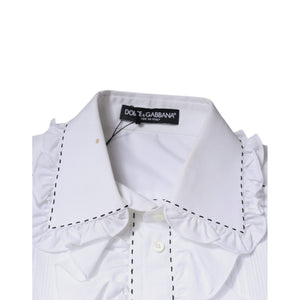 Dolce & Gabbana White Cotton Long Sleeves Ruffle Collar Top