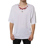 Dolce & Gabbana White Cotton Necklace Embellished T-shirt