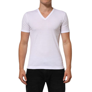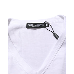 Dolce & Gabbana White Cotton V-Neck Short Sleeves T-shirt