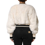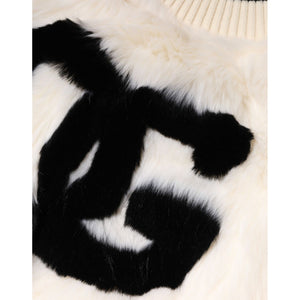 Dolce & Gabbana White Cropped Faux Fur DG Sweatshirt Sweater