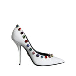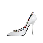 Dolce & Gabbana White Crystal Leather High Heels Pumps Shoes