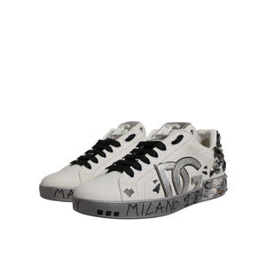 Dolce & Gabbana White Crystal Logo Portofino Sneakers Shoes
